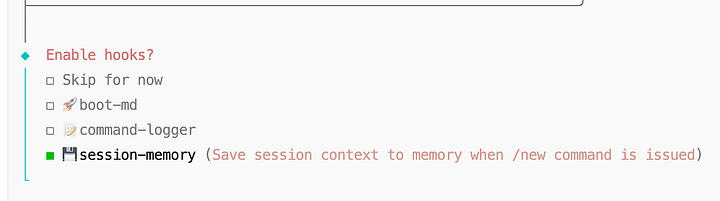 Select only: session-memory (Use the up and down arrow keys to move the cursor, the spacebar to select, and the Enter key to confirm and proceed to the next step)
