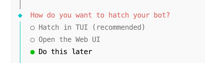 After running clawdbot onboard, you need to complete the subsequent configuration actions using the keyboard. Key operations: use the arrow keys to control options, and press Enter to select and confirm.