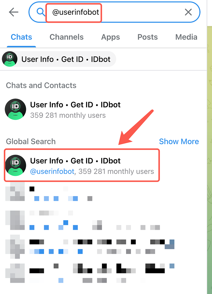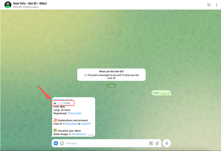 If this step occurs during the Channel configuration process of integrating with Telegram, you need to obtain your user ID in Telegram and add it. Refer to the following steps.