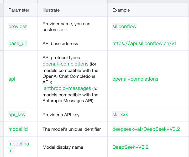 Taking silicon-based flow as an example, using the “OpenAI” protocol and the DeepSeekv3.2 model: