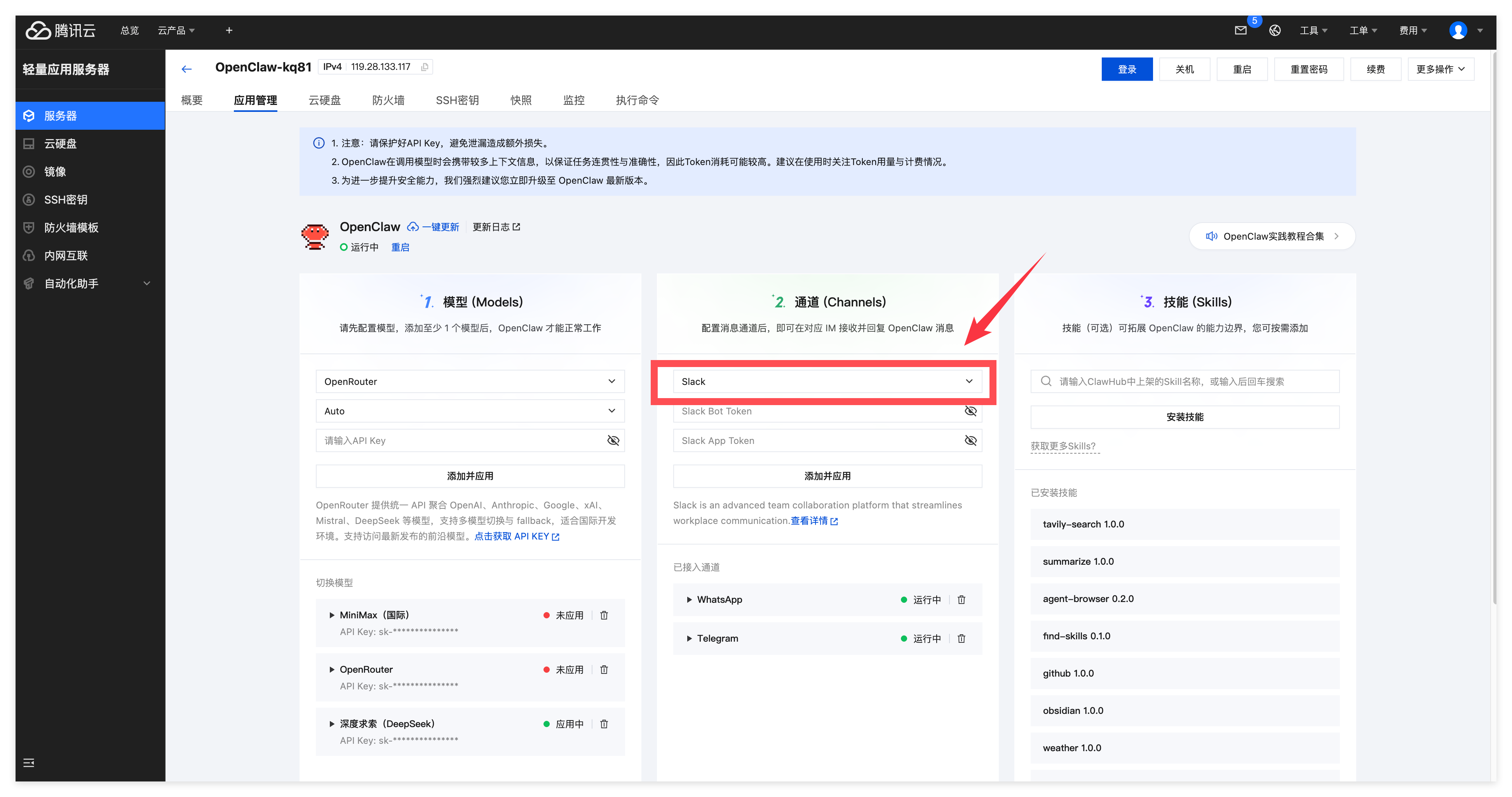 本文主要介绍如何在腾讯云轻量应用服务器Lighthouse中部署完成OpenClaw后,配置接入Slack。