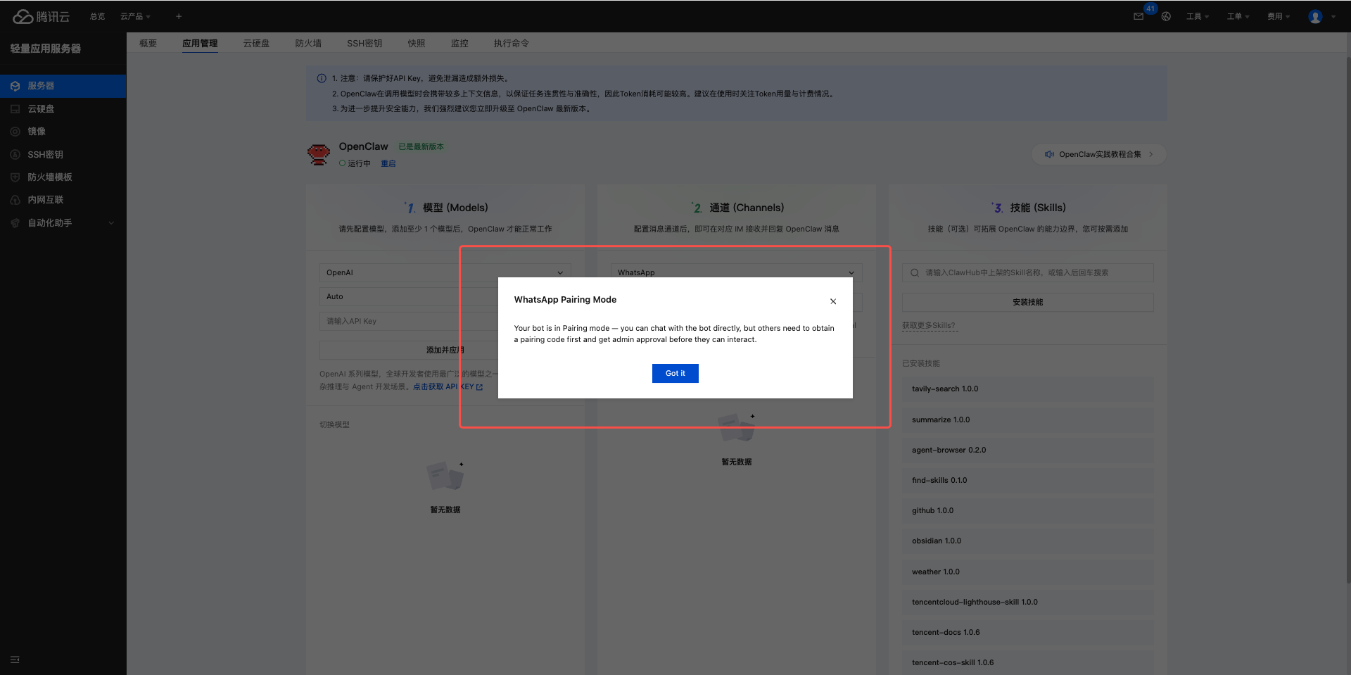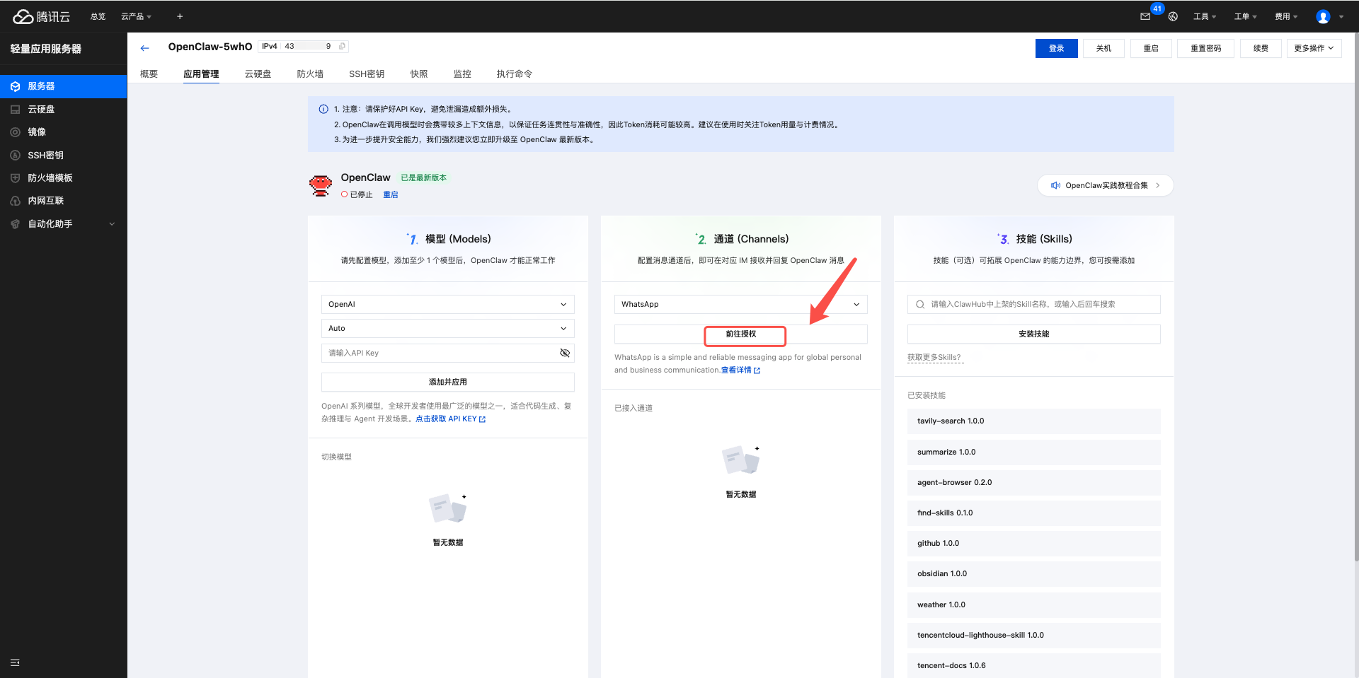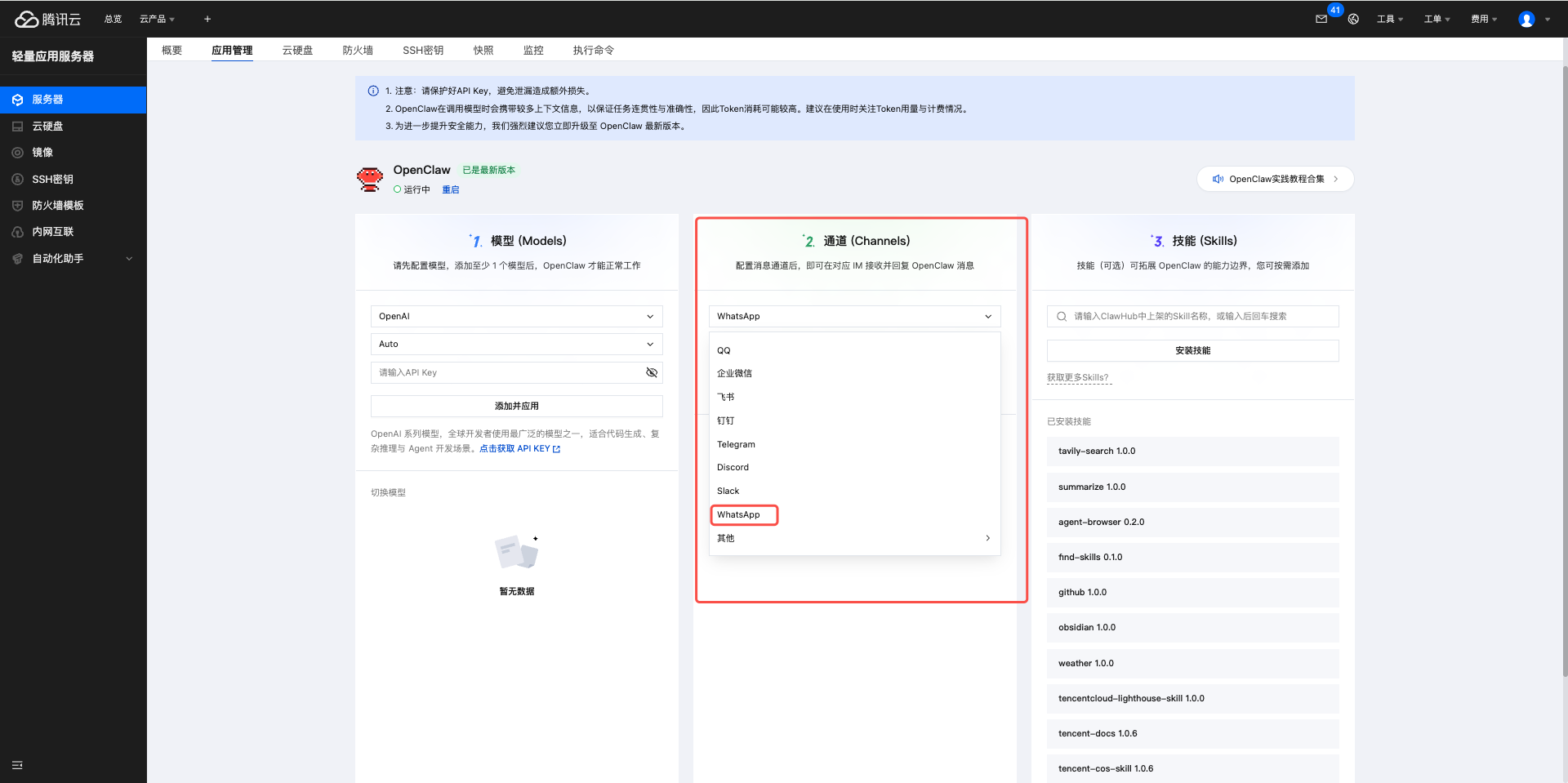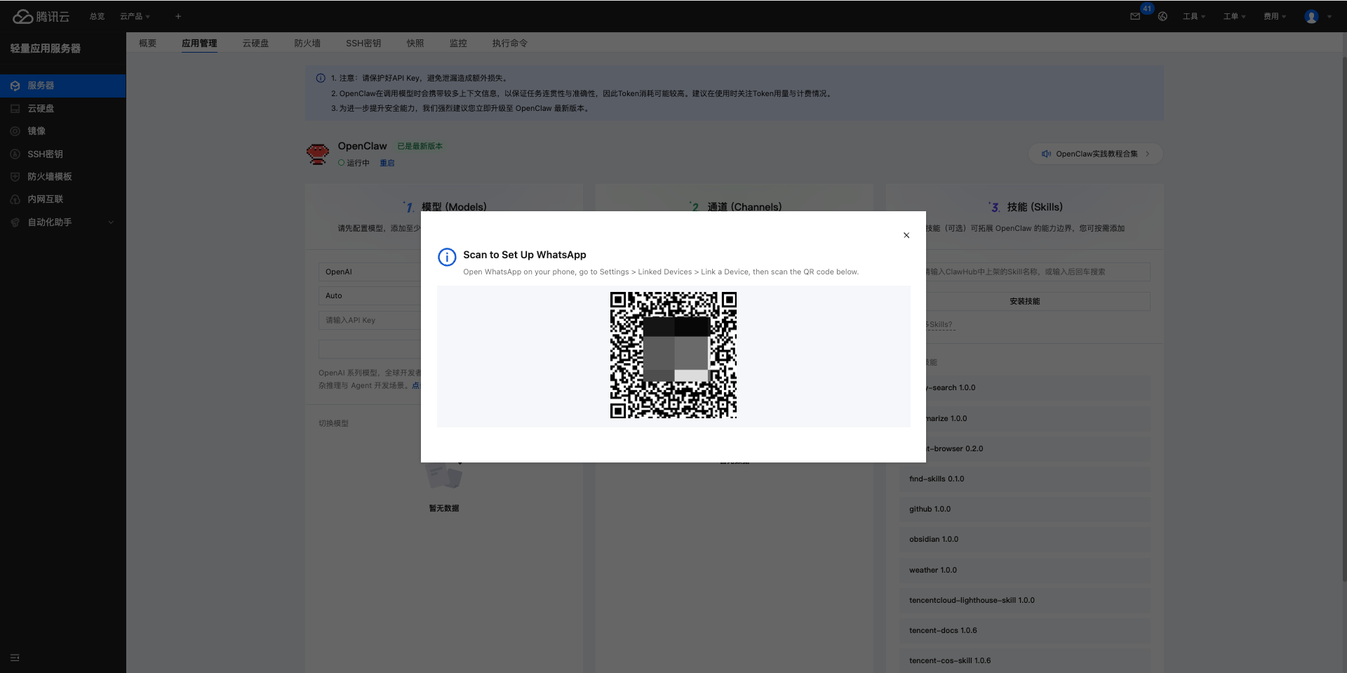 本文主要介绍如何在腾讯云轻量应用服务器Lighthouse中部署完成OpenClaw后,配置接入WhatsApp。