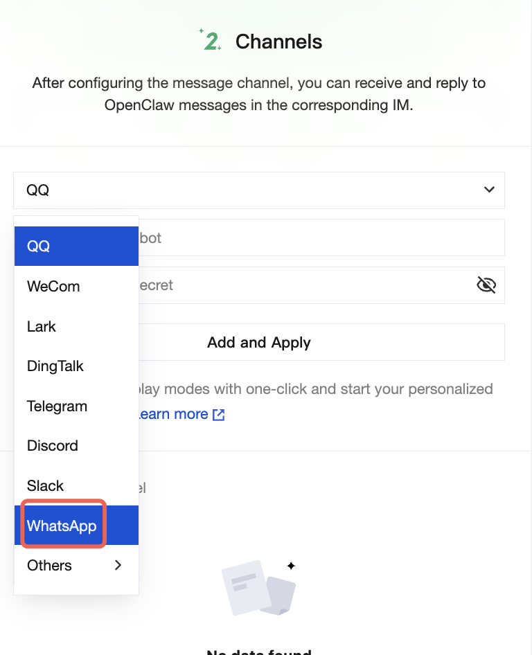 1.Di pengaturan saluran aplikasi, pilih WhatsApp.
