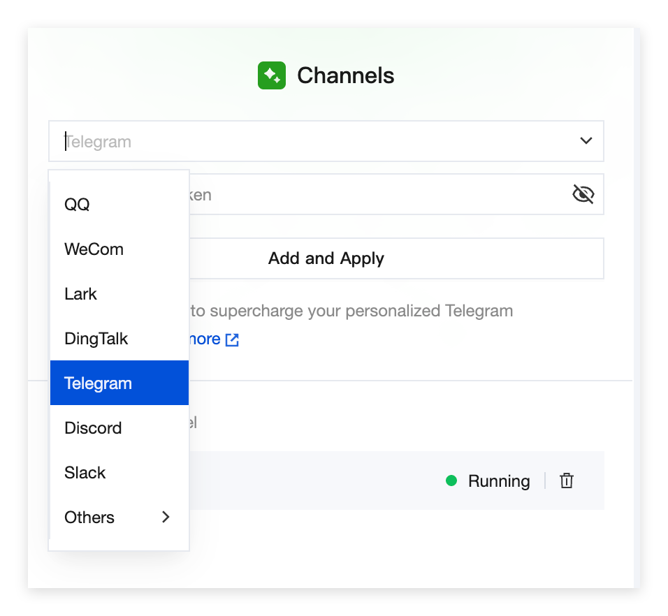 Pada pengaturan channel aplikasi, pilih Telegram.