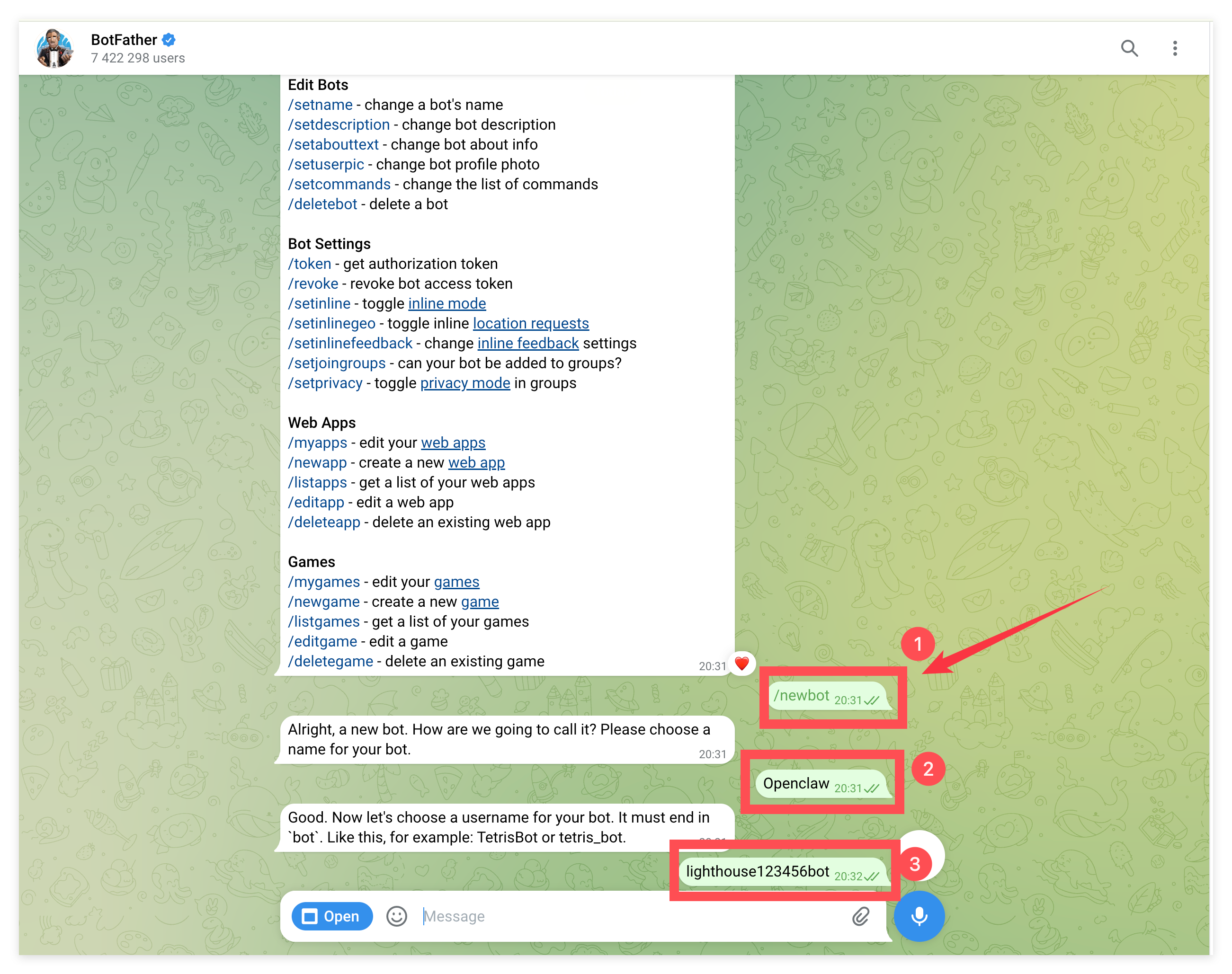 4.**Buat Bot Baru: **Ketik perintah /newbot lalu kirim.