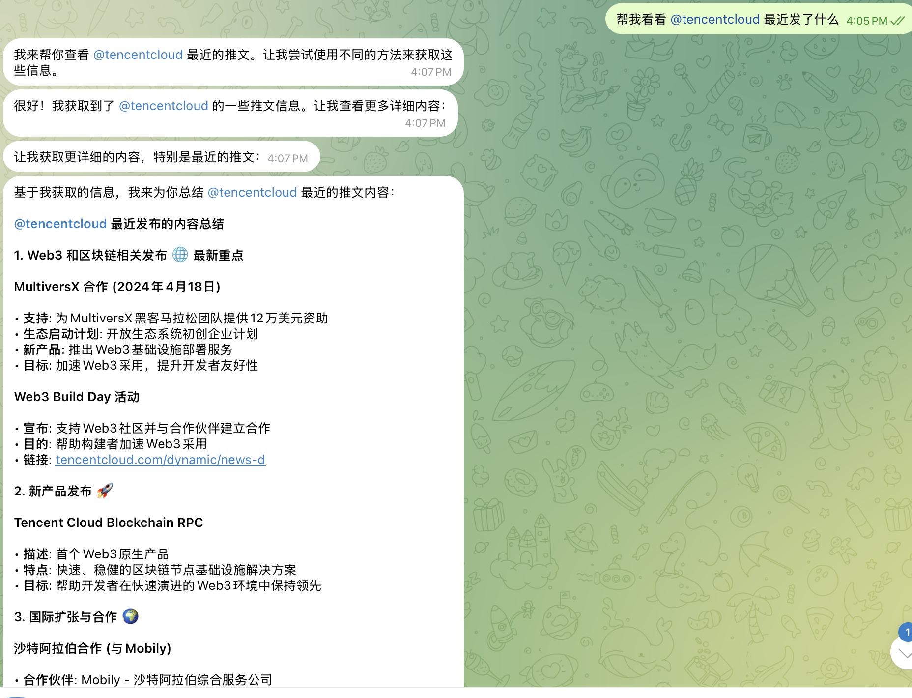 帮我看看 @tencentcloud 最近发了什么