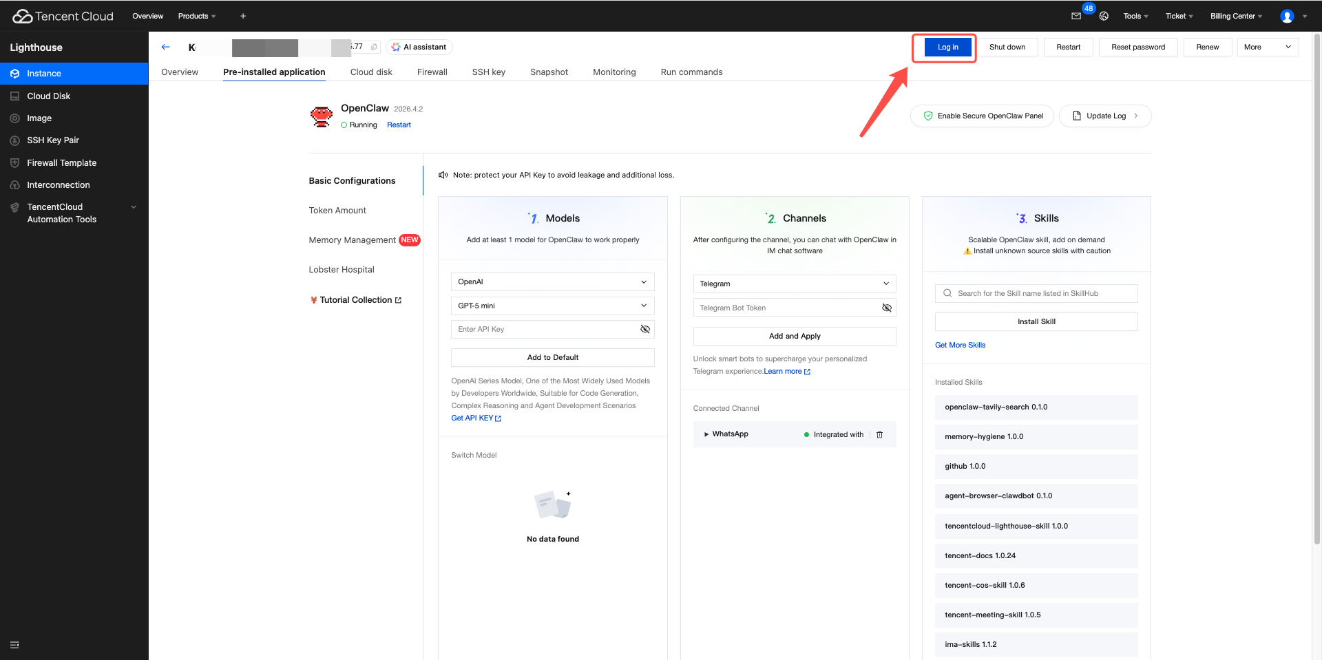 Locate the instance where OpenClaw is deployed, and click the Login button.