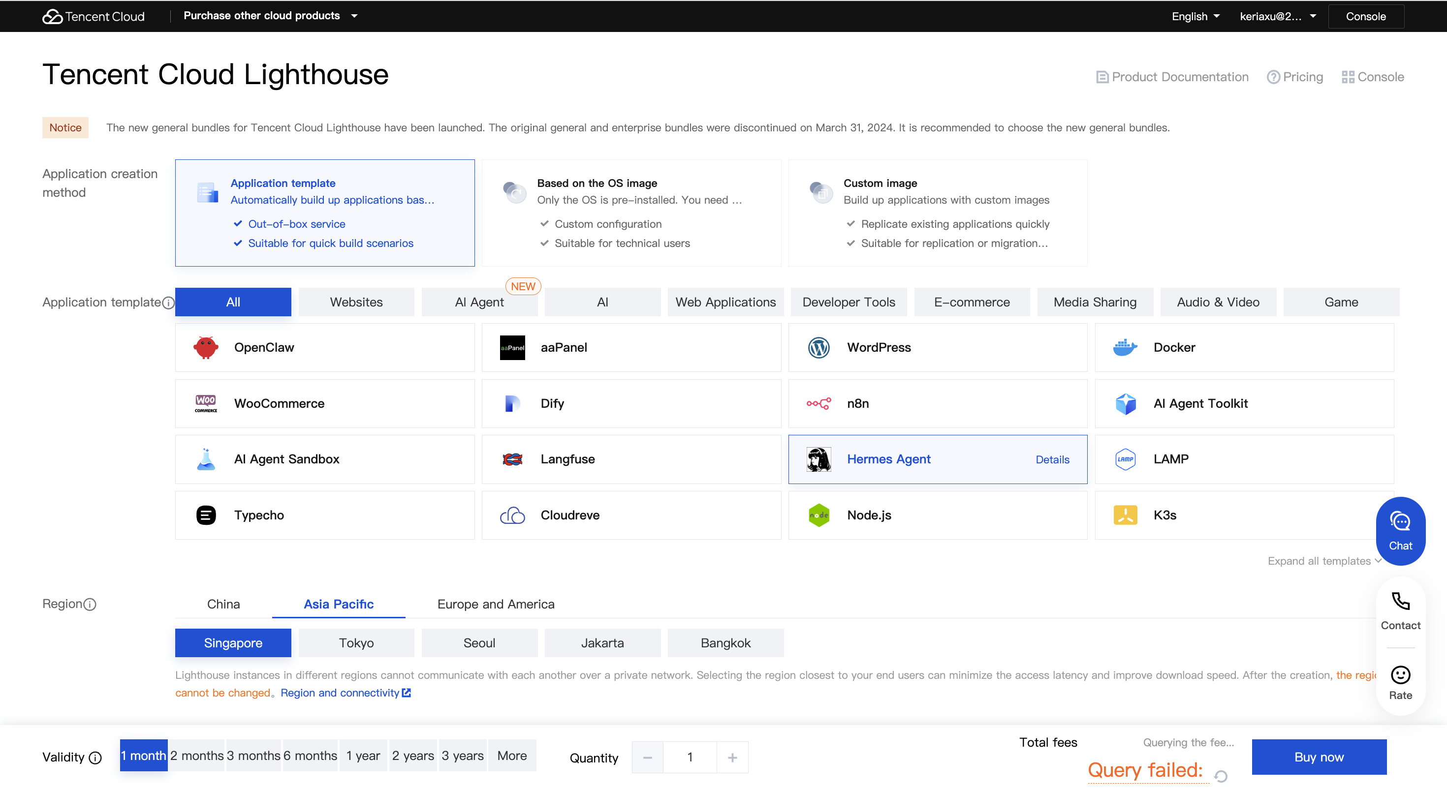 Go to the Tencent Cloud Lighthouse product purchase page to purchase a server. Recommended configuration: