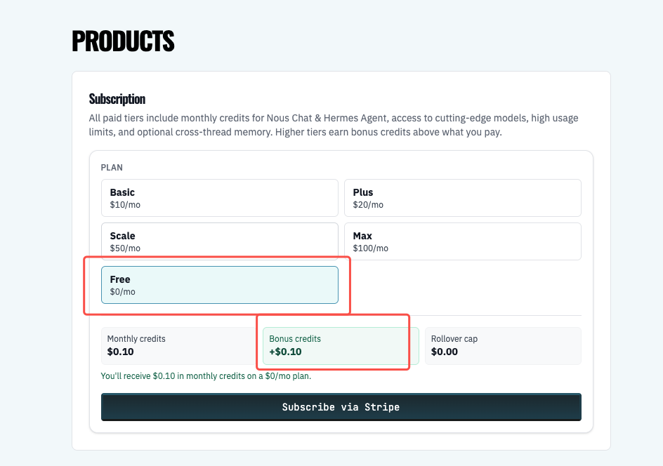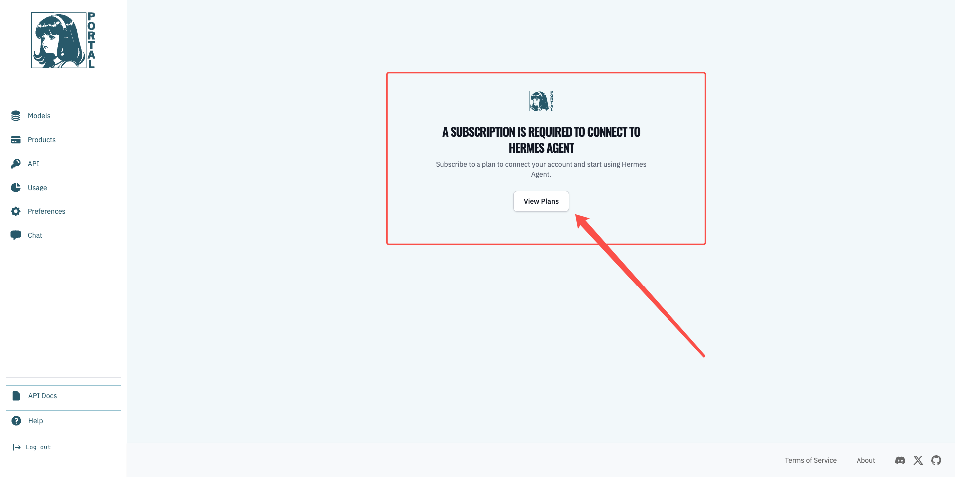 如果你是首次使用 Nous Portal,打开网页后系统会提示你需要先订阅一个计划才能继续。