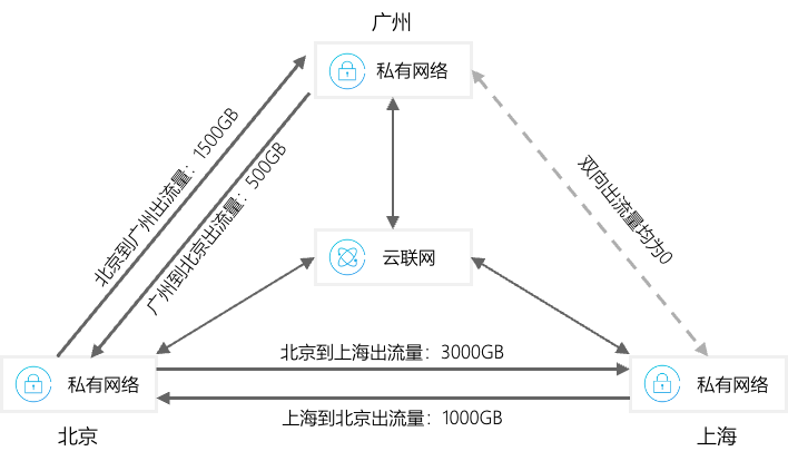 云联网数据传输总费用 = 各地域间出流量费用。
