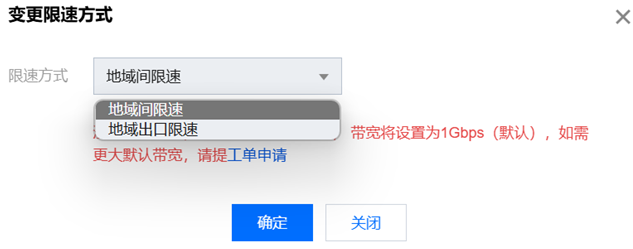 默认带宽上限为 1Gbps,如需更大默认带宽,请提 工单申请。 地域间带宽限速