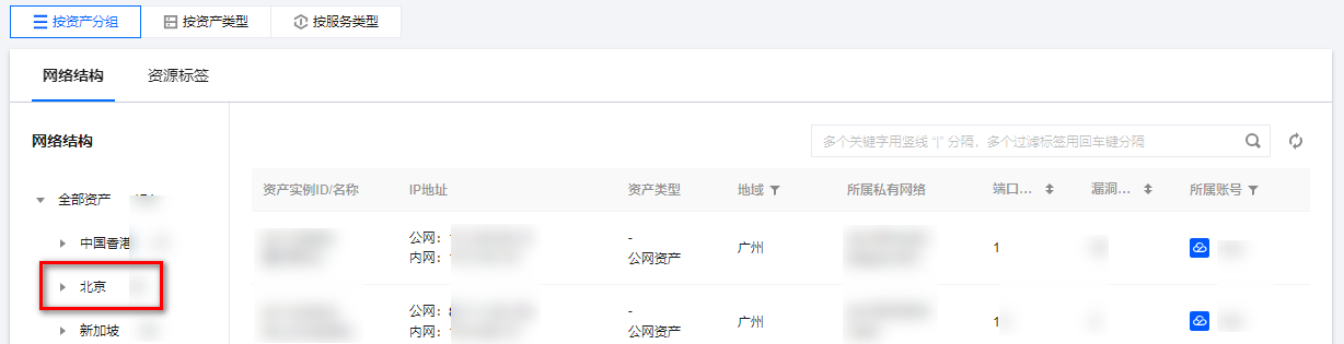 资产更新可以自动同步腾讯云上的资产,非腾讯云上资产,请参见 添加云外资产。 搜索资产