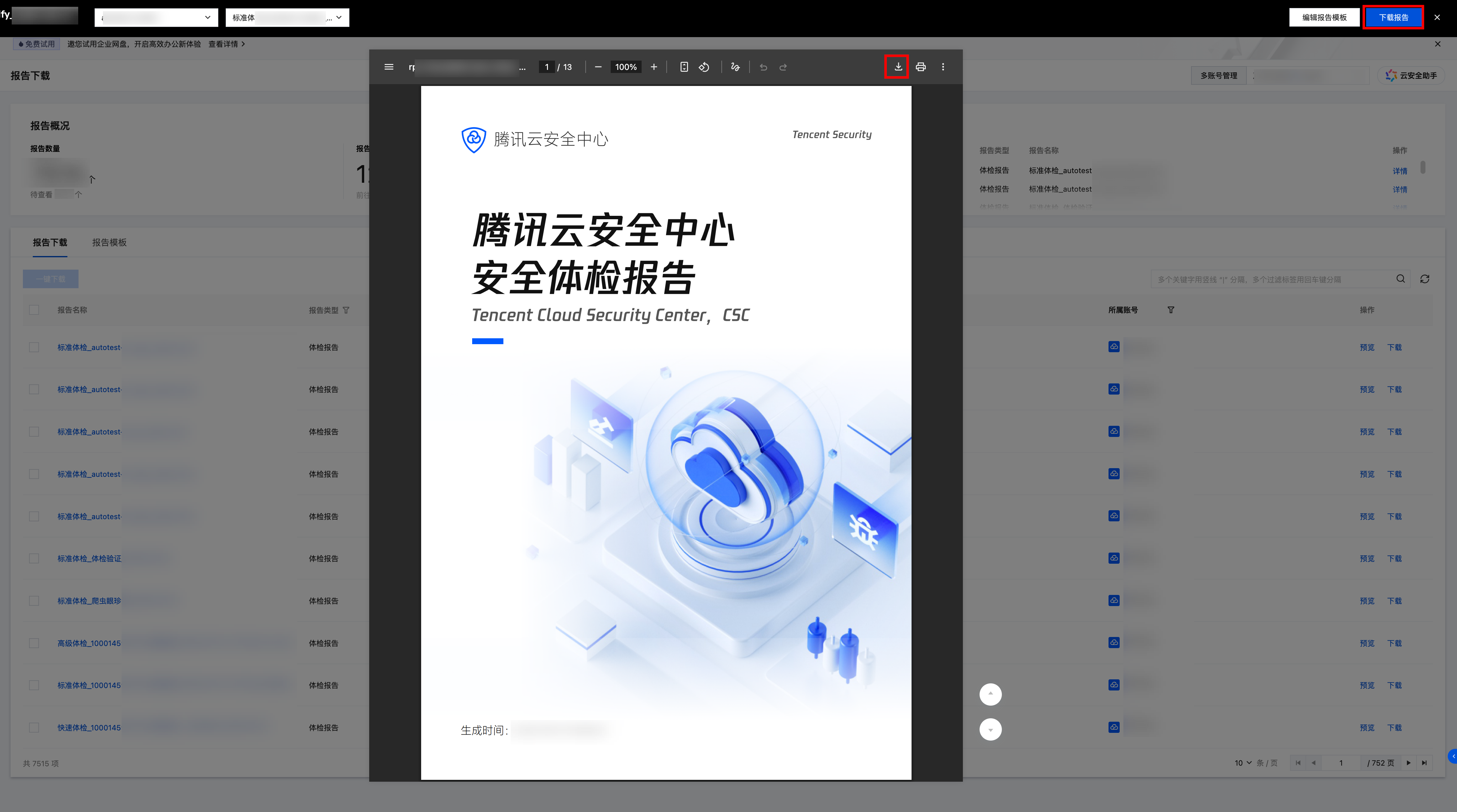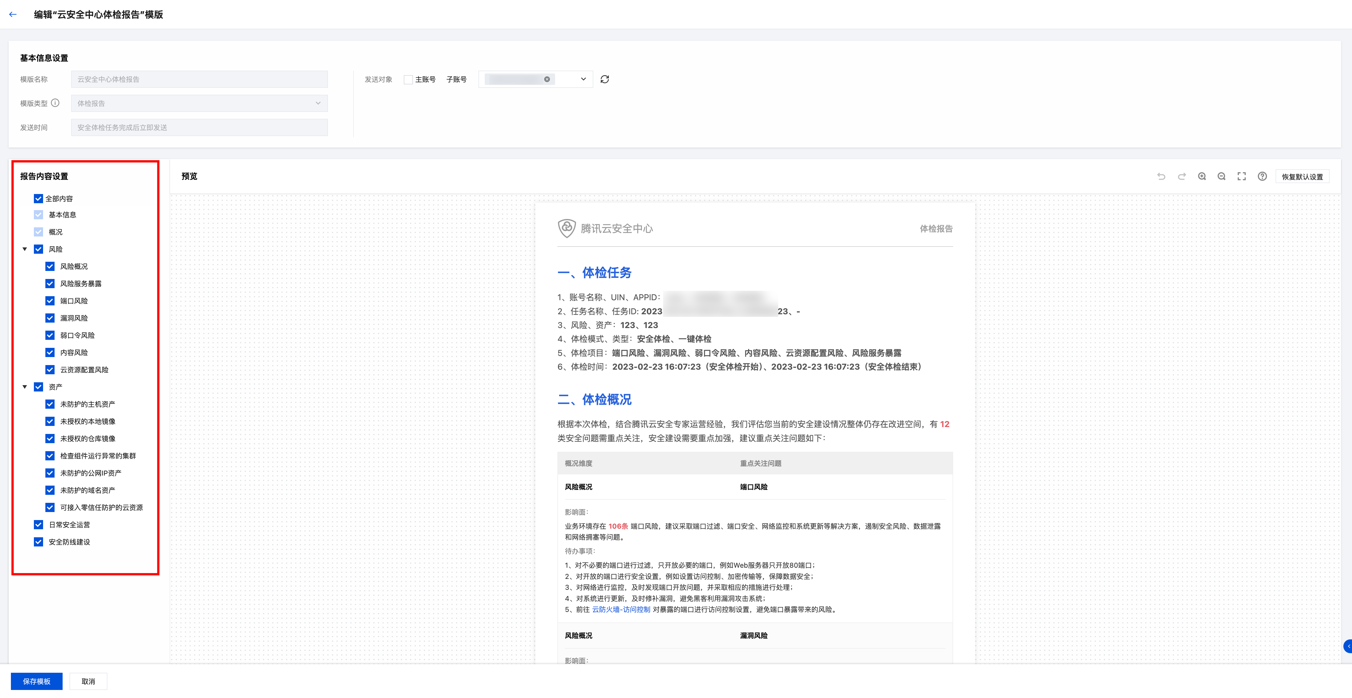 报告下载功能允许用户以报告的形式获取安全体检结果,并支持编辑报告模板,按需定制报告。