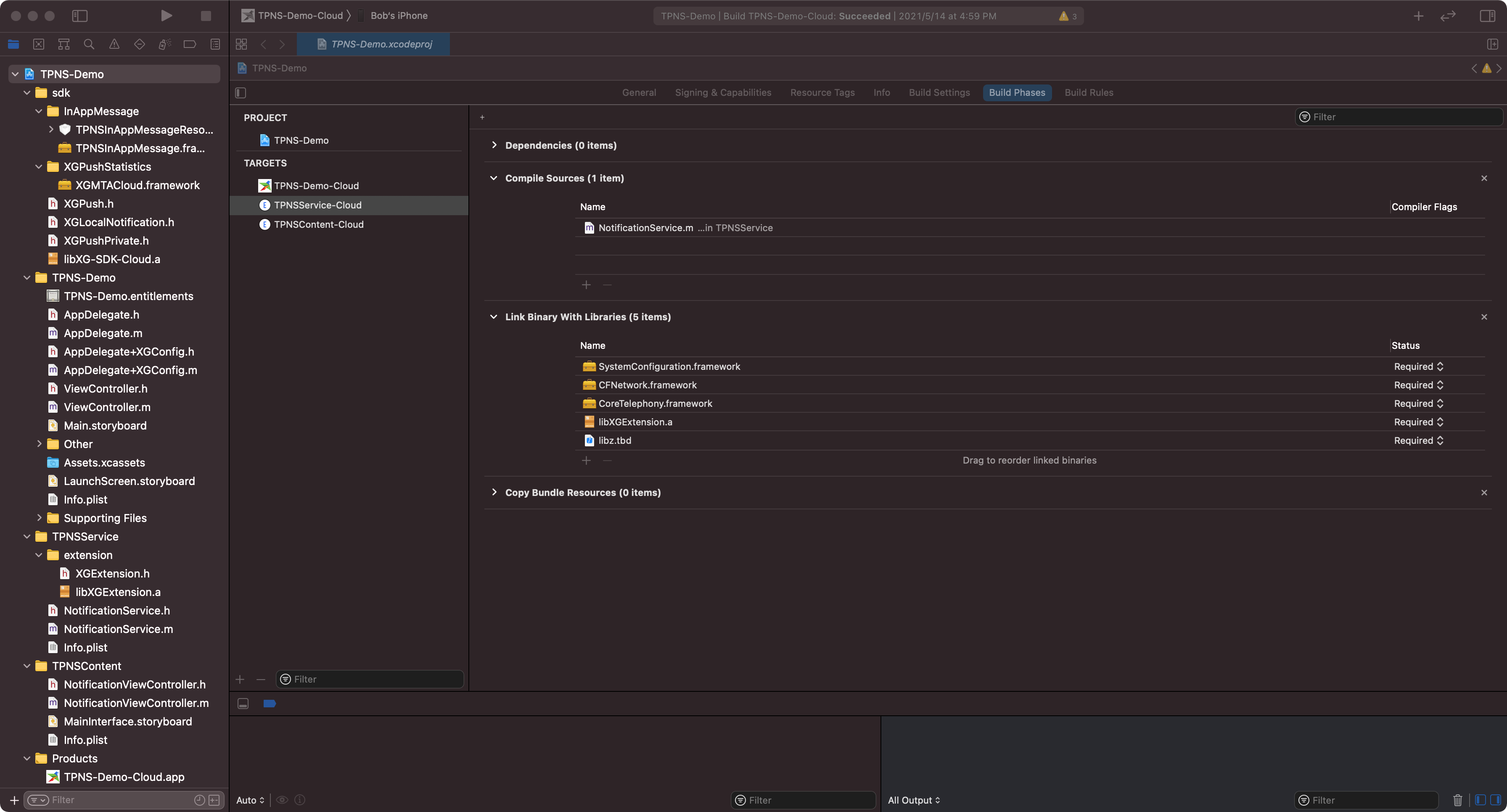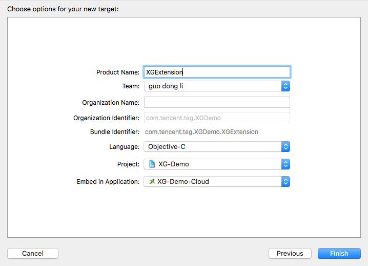 XGExtension.h 及 libXGExtension.a 文件。XGExtension.h及 libXGExtension.a 文件添加至通知扩展 Target: