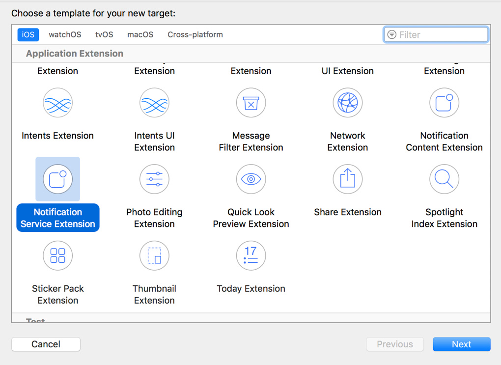 Application Extension 的 Notification Service Extension TARGET,例如 XXServiceExtension。target ‘XXServiceExtension'doplatform:ios,'10.0'pod 'TPNS-iOS-Extension' , '~> 版本' // 需要与主SDK(TPNS-iOS)版本保持一致end