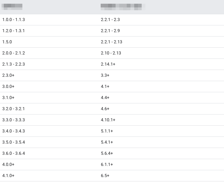 5. 使用插件过程中,遇到 Android Gradle 插件版本跟 Gradle 版本不匹配的问题,可以参考 Android Gradle 插件版本说明 进行版本升级,下图列出了当前各个 Android Gradle 插件版本所需的 Gradle 版本: