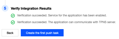 若出现以下验证失败提示,请确认 App 是否成功注册推送服务,可参见 接入结果验证。 注意: