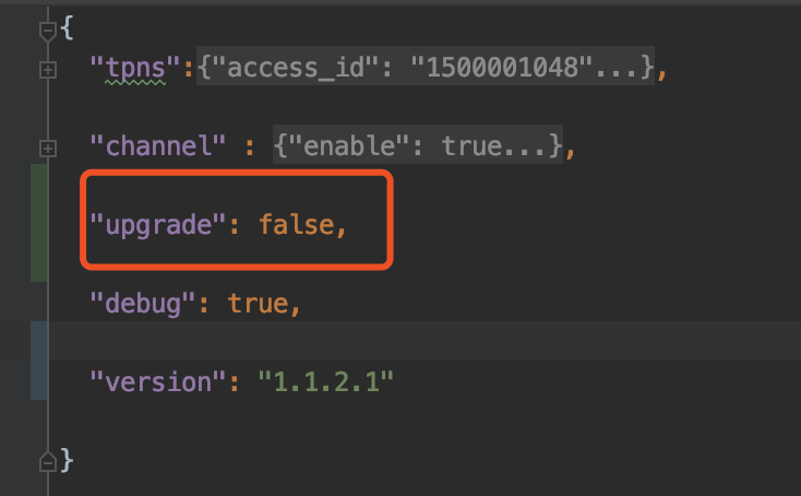 4. 如果日志显示 Execution failed for task ':Paracraft:checkTPNS',说明检查到有新版本的移动推送Android SDK 可以升级。如果不希望检查更新,可以在 tpns-configs.json 文件中添加 "upgrade": false,效果如下图: