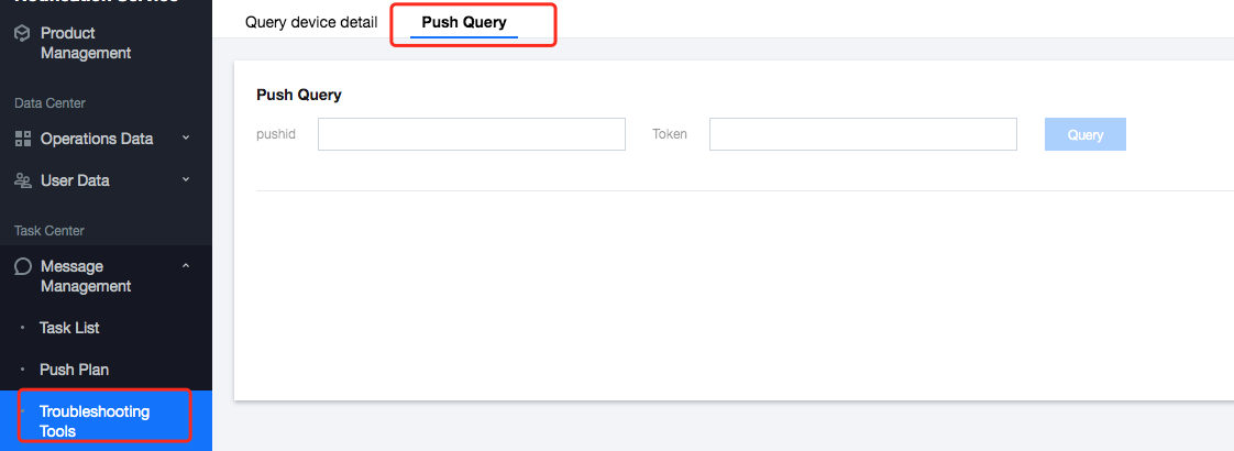 2. 输入 pushid(必选)、待查询的设备 Token(必选),单击查询,查看排查结果。