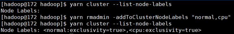 yarn rmadmin -addToClusterNodeLabels命令新增标签。