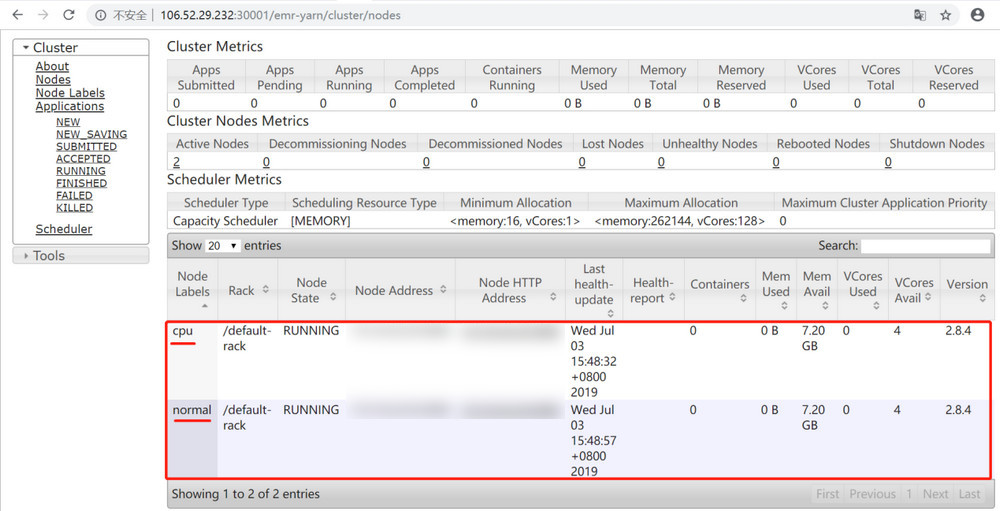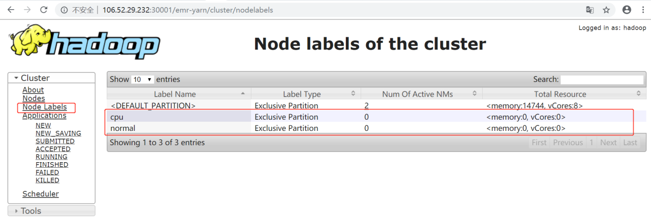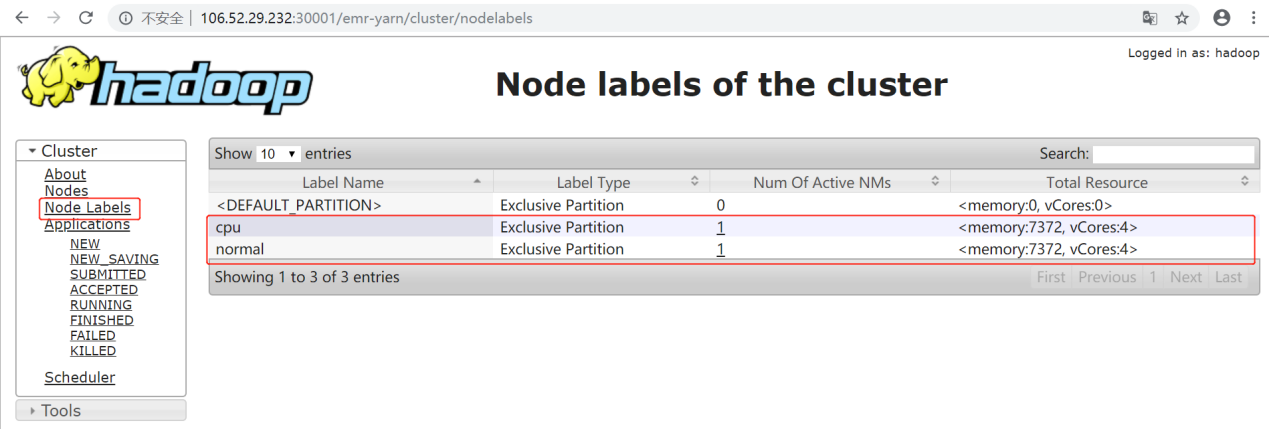 yarn rmadmin -replaceLabelsOnNode命令给节点打标签。