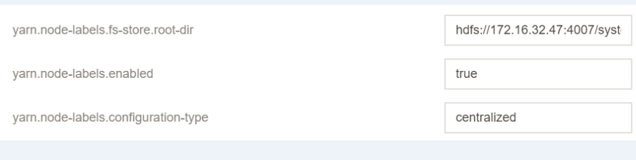 conf/yarn-site.xml中设置。<property><name>yarn.node-labels.fs-store.root-dir</name><value>hdfs://namenode:port/path-to-store/node-labels/</value></property><property><name>yarn.node-labels.enabled</name><value>true</value></property><property><name>yarn.node-labels.configuration-type</name><value>centralized or delegated-centralized or distributed</value></property>