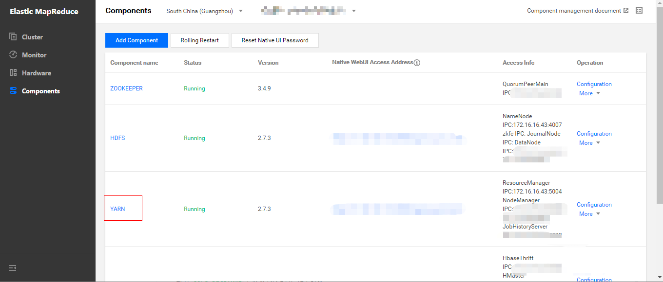 yarn-site.xml中相关参数,保存并重启所有 YARN 组件。在角色管理标签页确认 ResourceManager 服务所在节点 IP,之后切换至配置管理标签页修改yarn-site.xml中相关参数,保存并重启所有 YARN 组件。