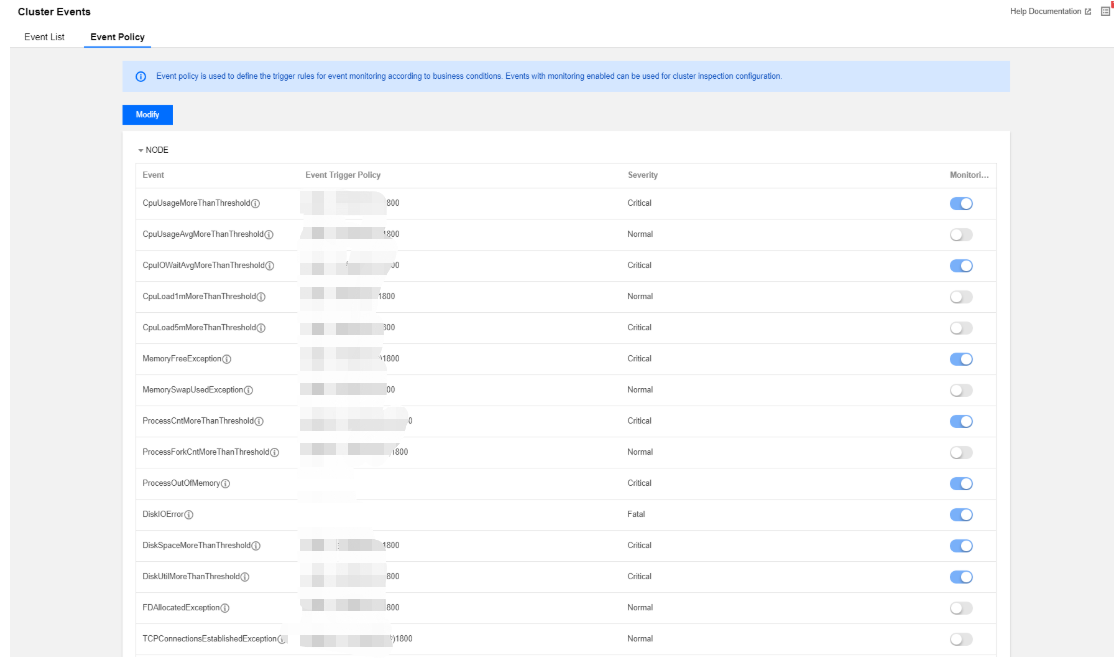 节点 | CPU 利用率连续高于阈值 | 机器 CPU 利用率 >= m,持续时间 t 秒(300<=t<=2592000) | 节点扩容或升配 | m=85, t=1800 | 严重 | 是 | 是 |