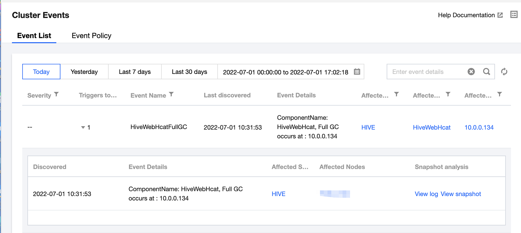 | HiveServer2 JVM 内存使用率持续高于阈值 | HiveServer2 JVM 内存使用率 >= m,持续时间 t 秒(300<=t<=2592000) | 调整 HiveServer2 堆内存大小 | m=85, t=1800 | 严重 | 是 | 是 |