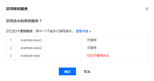 确认无误后,单击确定,即可对批量对密钥进行启用或禁用。