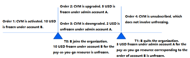 成员账号进行预付费降配或退订时,按订单的支付者账户 UIN 和比例退回支付者账户。