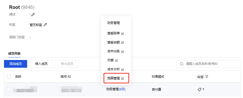 预算管理 | 管理账号支持为成员账号配置预算。 |