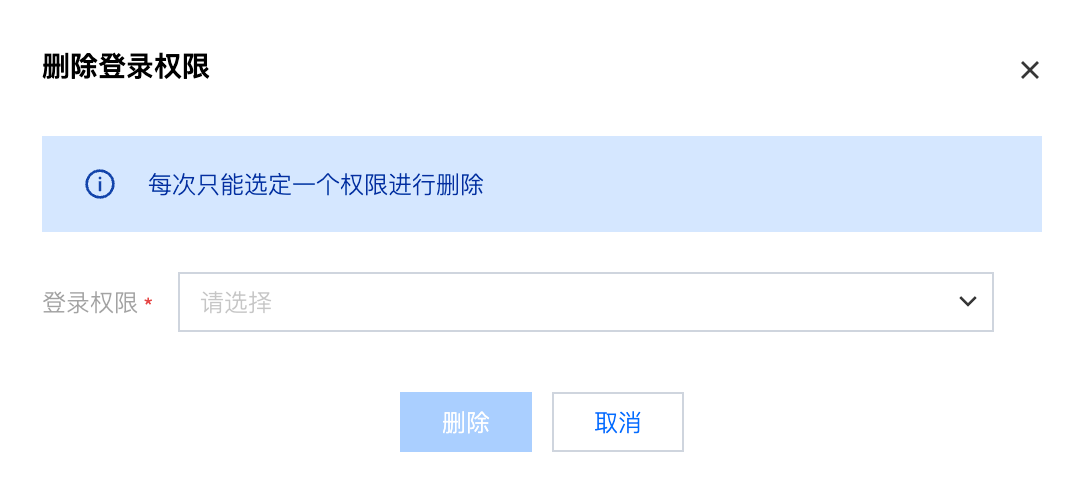4. 单击删除即可成功删除登录权限。