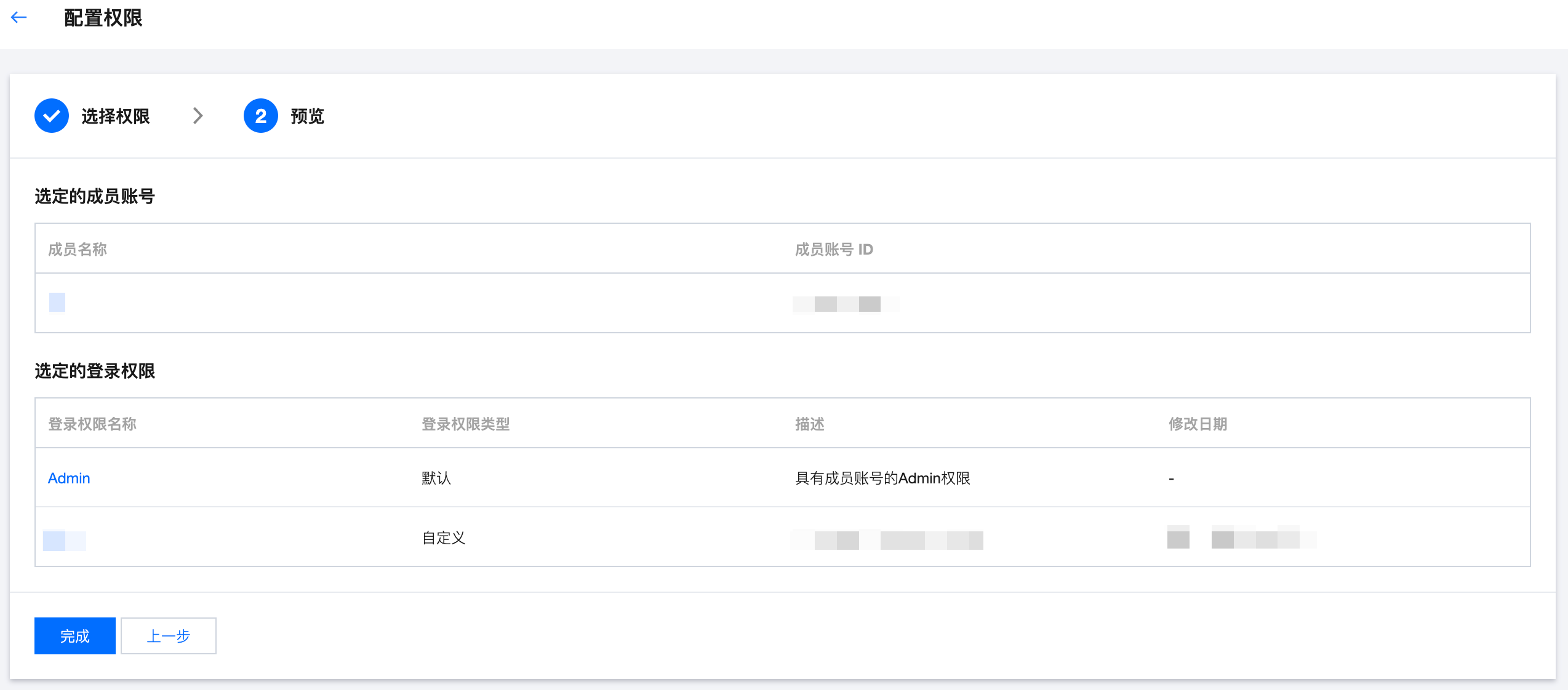4. 单击完成即可成功为成员配置登录权限。