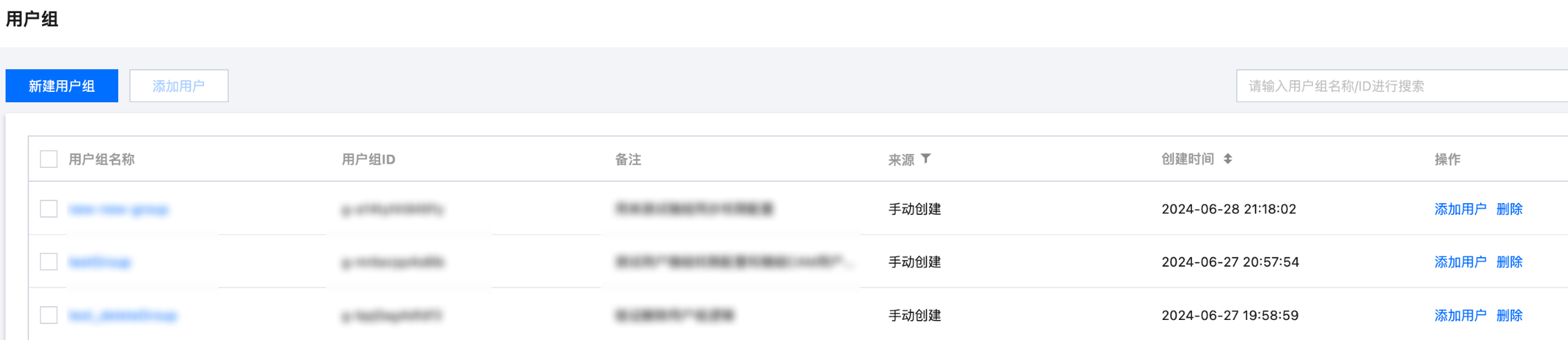1. 在用户组页面,单击目标用户组操作列的删除。