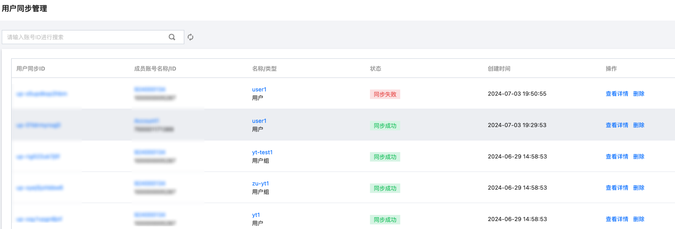 3. 在用户同步管理页面,单击目标用户同步操作列的查看详情。