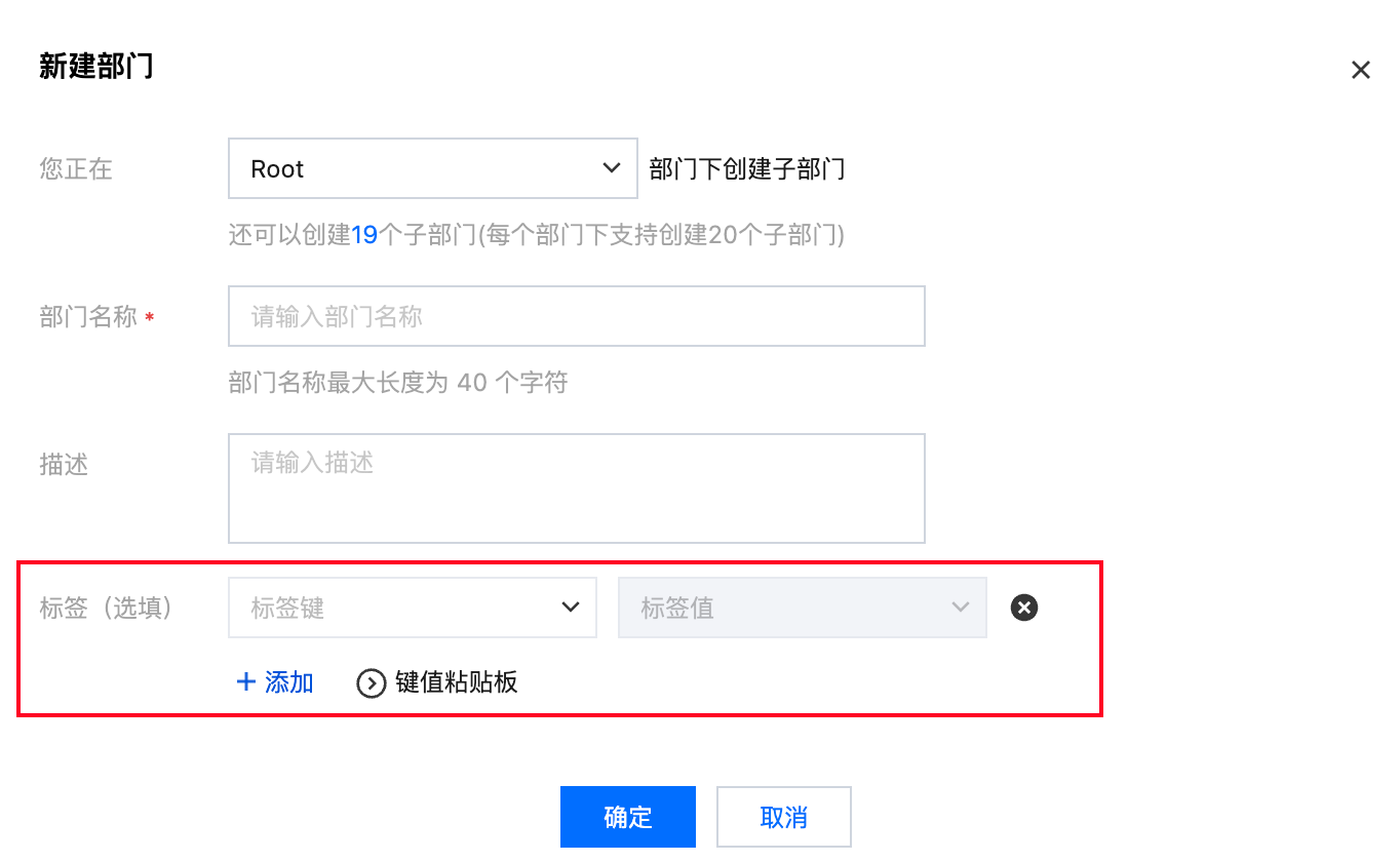 5. 单击确定,完成创建部门并绑定标签。