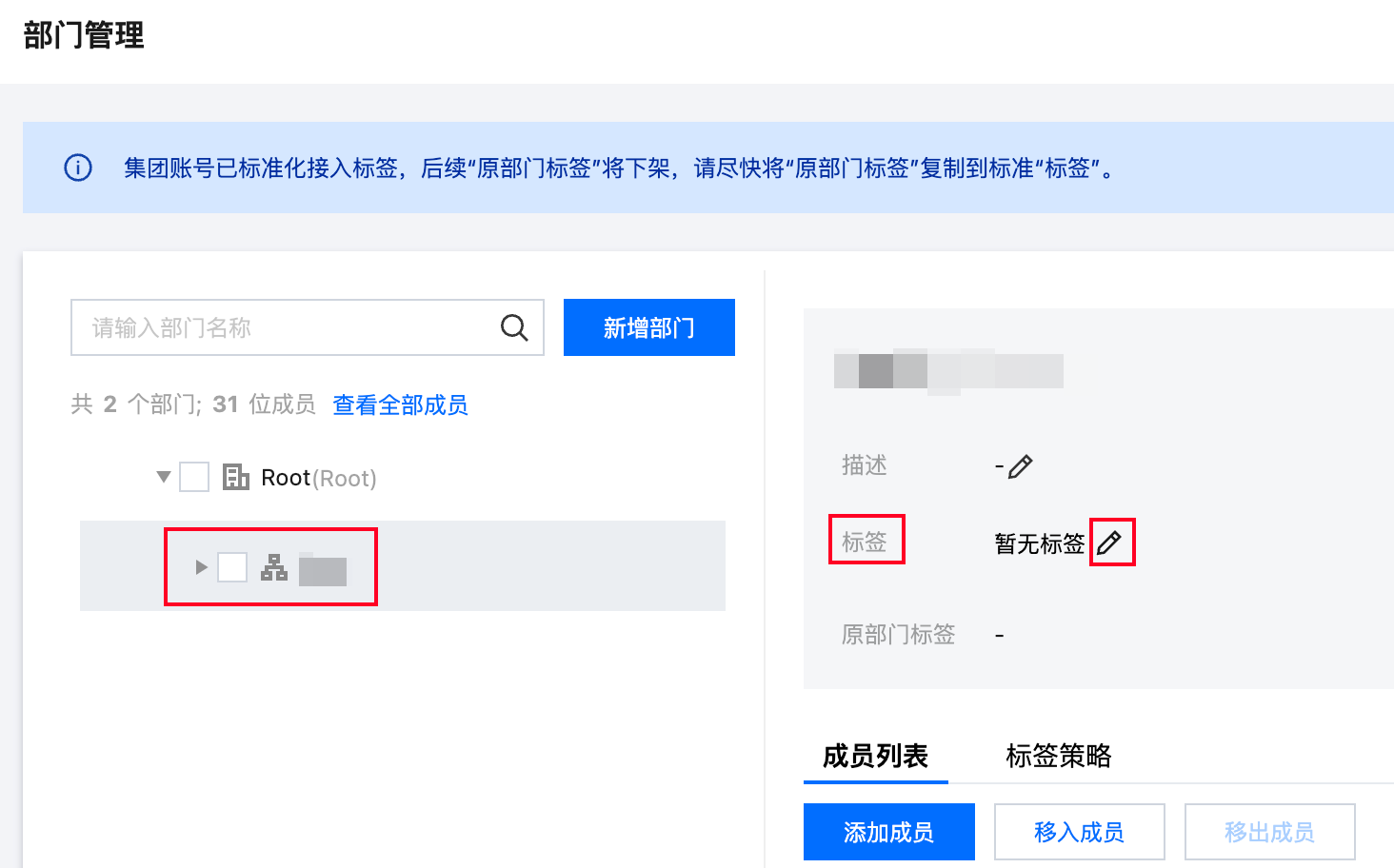 集团账号管理已标准化接入标签,后续“原部门标签”将下架,请尽快将“原部门标签”复制到标准“标签”。