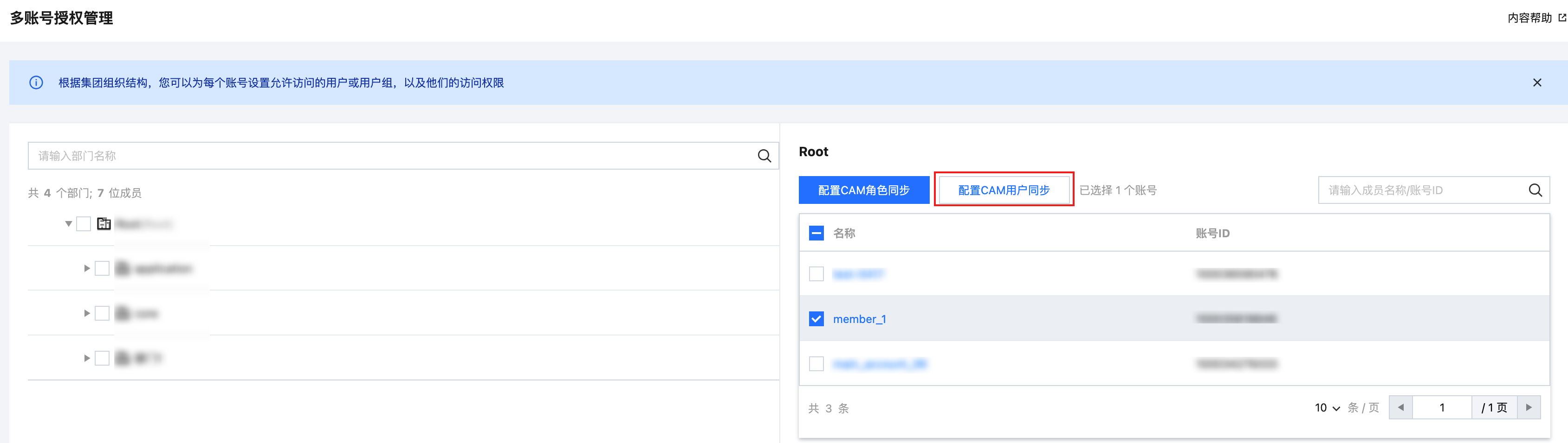 本文提供一个示例,通过配置 CAM 用户同步,在成员账号(member_1)中创建一个与身份中心用户(user1)同名的 CAM 子账号(user1)。