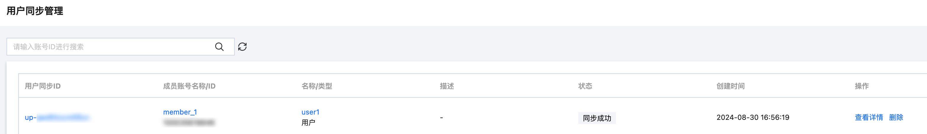 1. 配置成功后,系统会自动在成员账号(member_1)中同步创建一个与身份中心用户(user1)同名的 CAM 子用户(user1)。