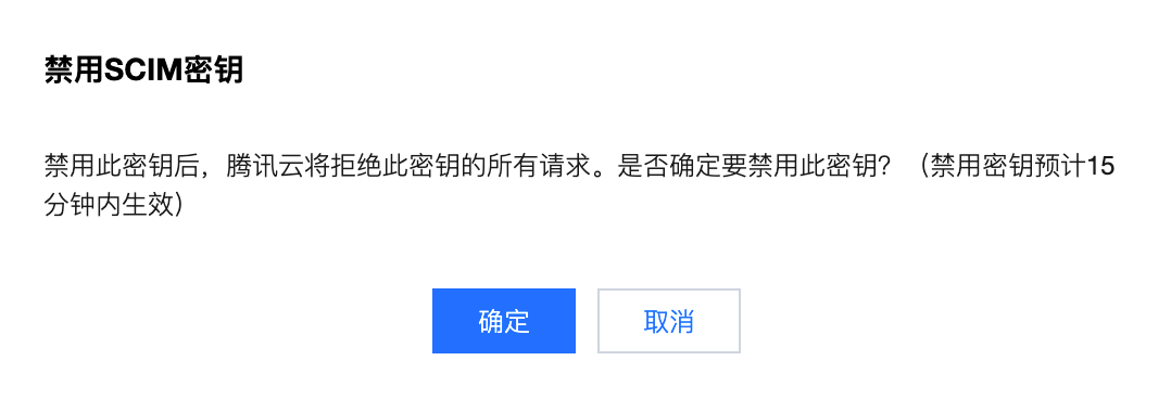 4. 在禁用SCIM 密钥对话框,单击确定。