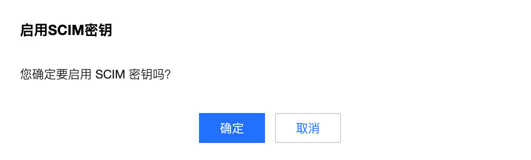 4. 在启用SCIM 密钥对话框,单击确定。