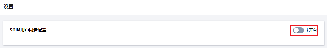 3. 在 SCIM 用户同步配置区域,单击,在弹出的窗口单击开启,启用 SCIM 同步。 说明: