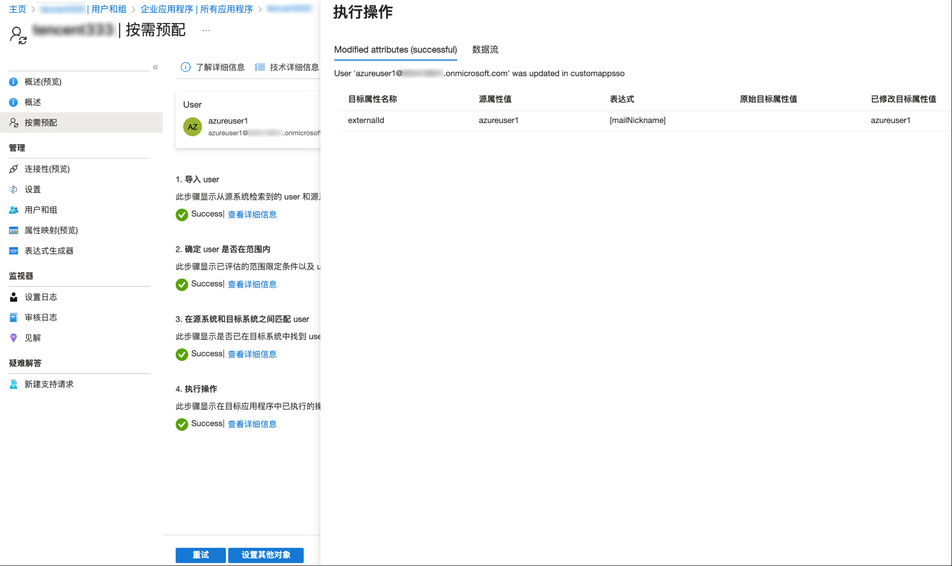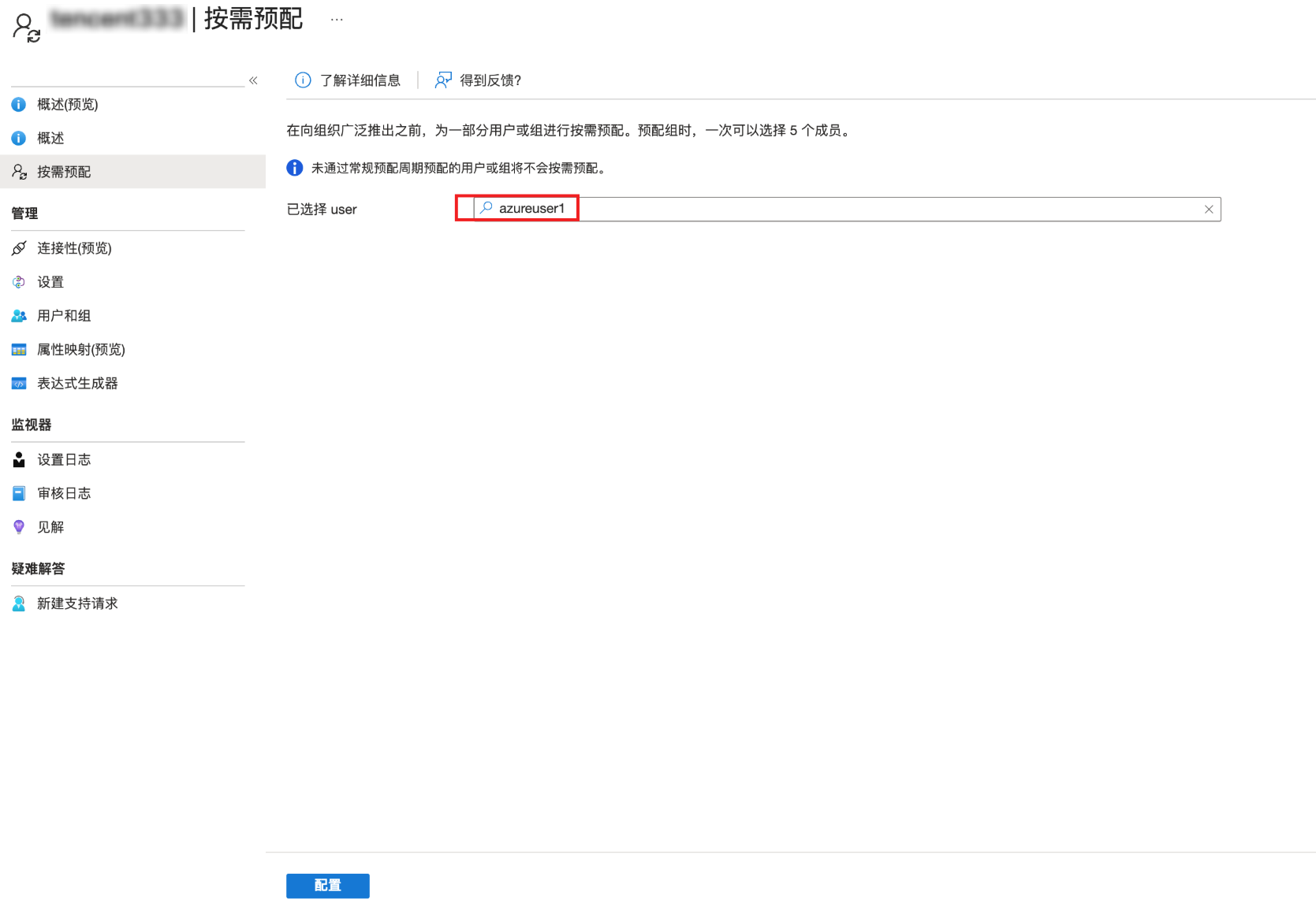 1. 在按需预配页面,选择需要同步的用户,单击配置。