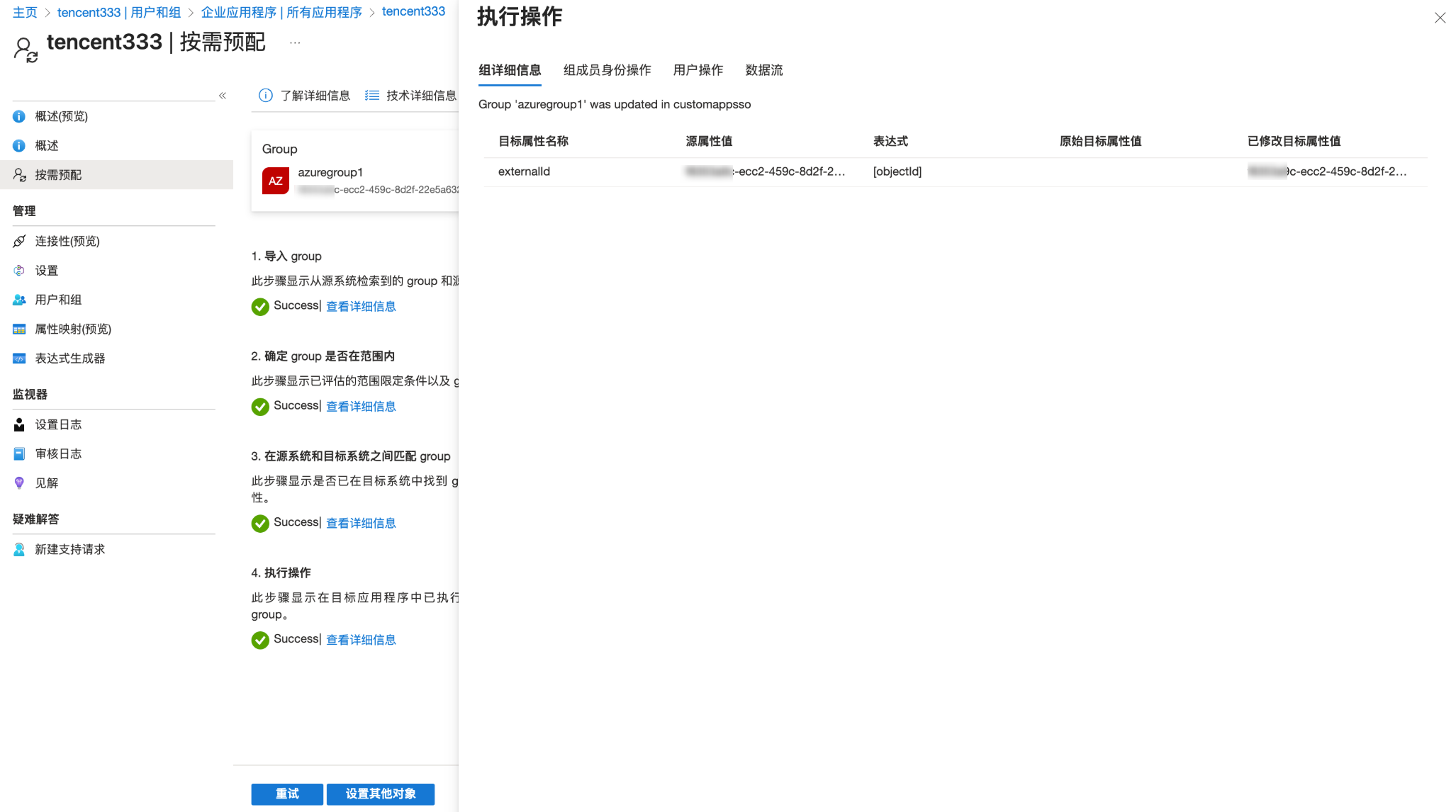 已分配的用户组在同步时,会自动同步组内用户;组内的增量用户也会按预配间隔时间同步(非实时)。