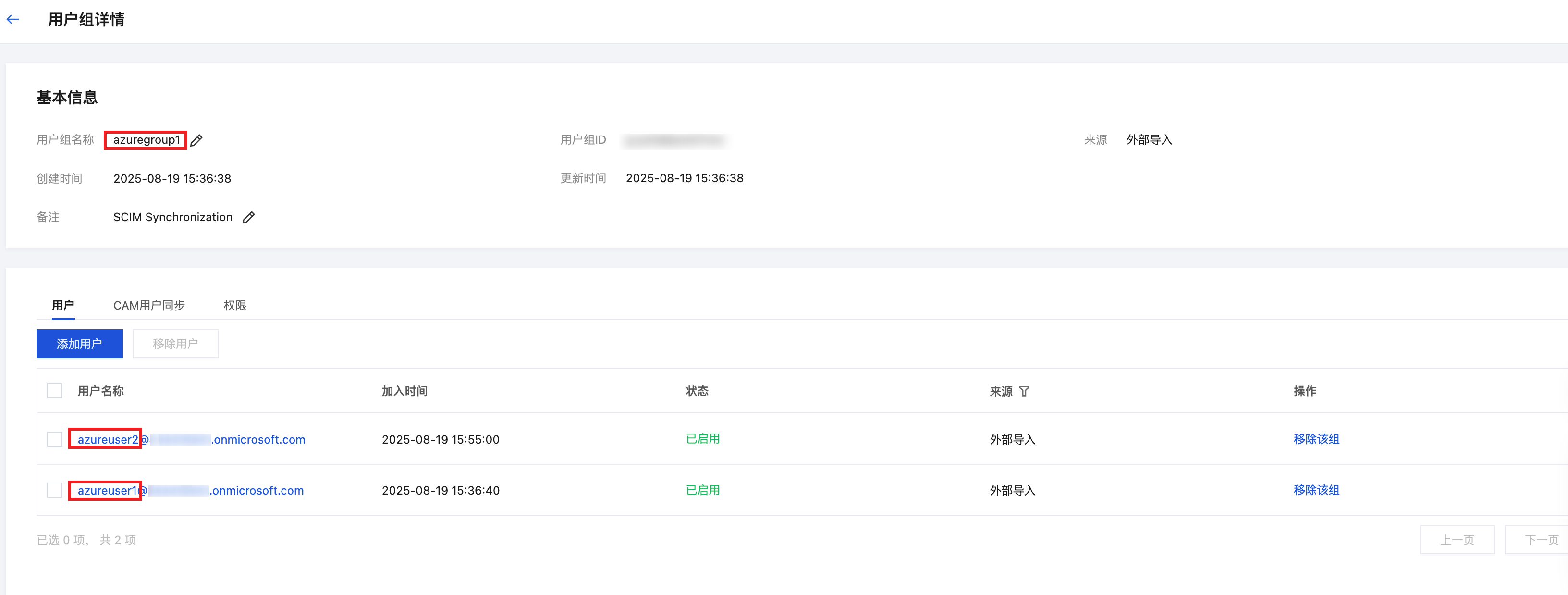单击用户组名称,进入用户组详情页,可以查看组内用户。