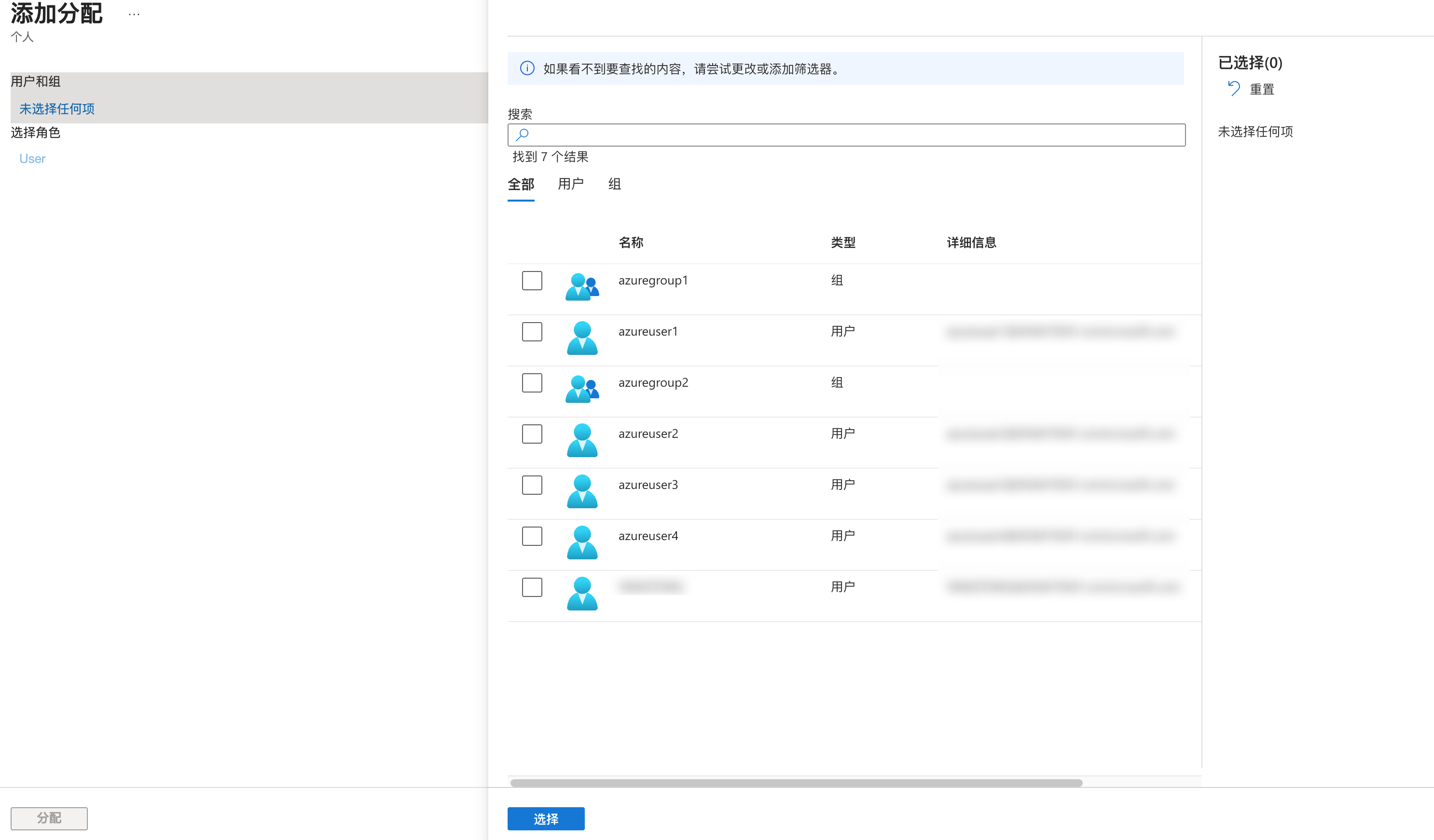 2. 在添加分配页面,选择用户或用户组,单击选择。