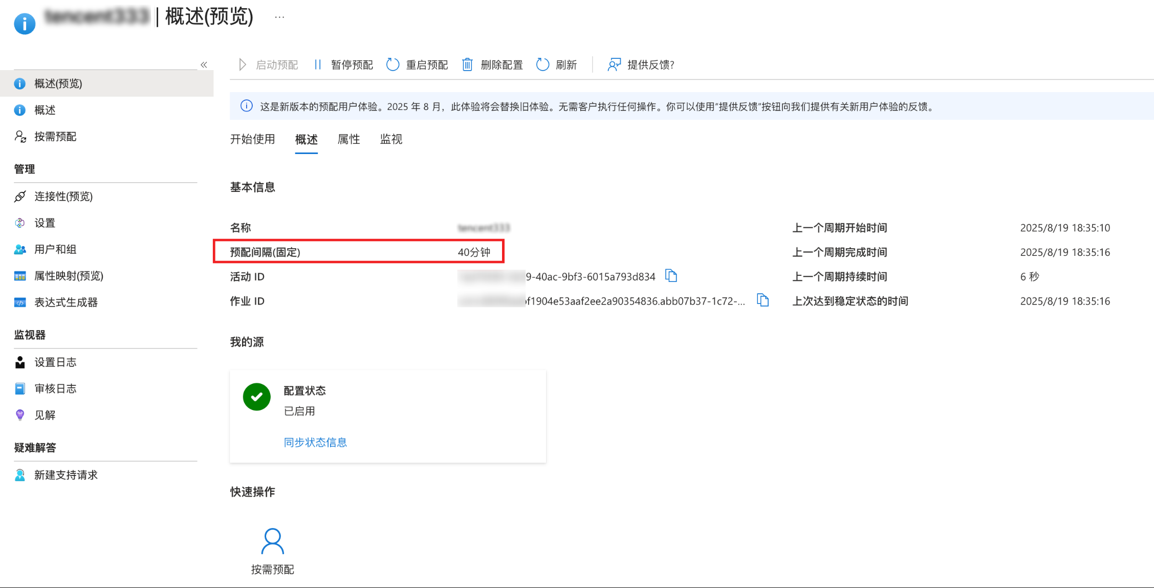 已分配的用户/组,会按照预配间隔时间自动同步到身份中心,非实时同步。
