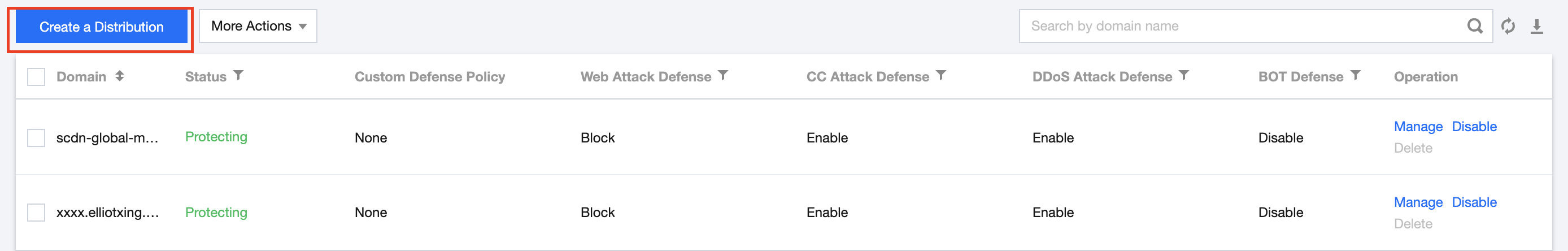 开通安全加速套餐后,可以登录 SCDN 控制台,添加安全加速域名。域名添加后会将相关域名安全配置下发至全网 SCDN 安全加速节点,不会影响现网业务可用性。 添加域名