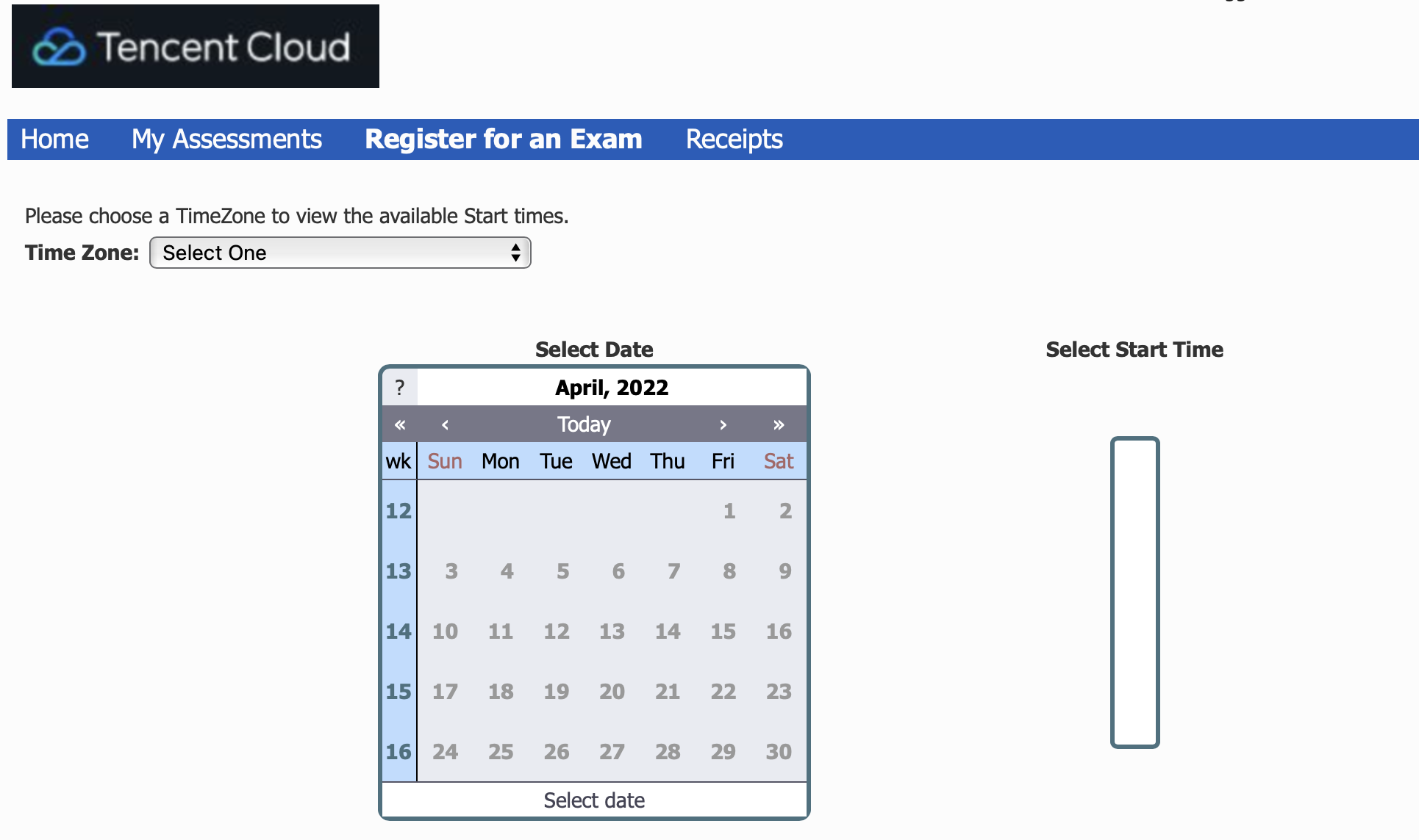 When creating your Tencent Cloud Webassessor account, please make sure to enter your legal first and last name. The entered name must match the name listed on your government-issued photo ID. If there is a mismatch, you will not be allowed to take your exam, and your exam fee will be forfeited.